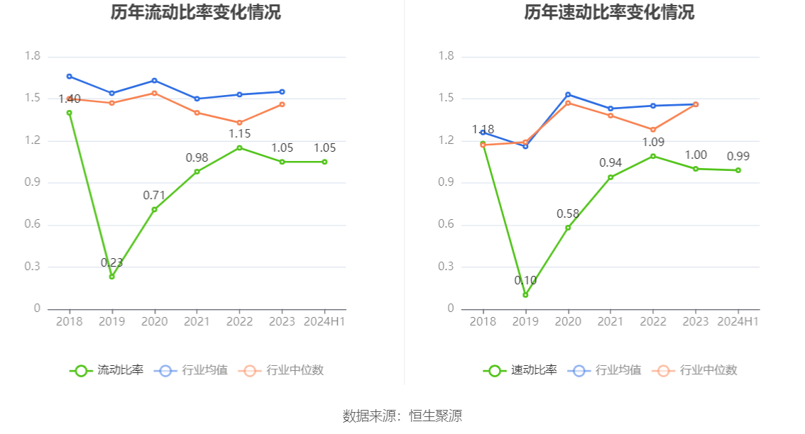 2024年上半年,公司流动比率为1.05,速动比率为0.99。