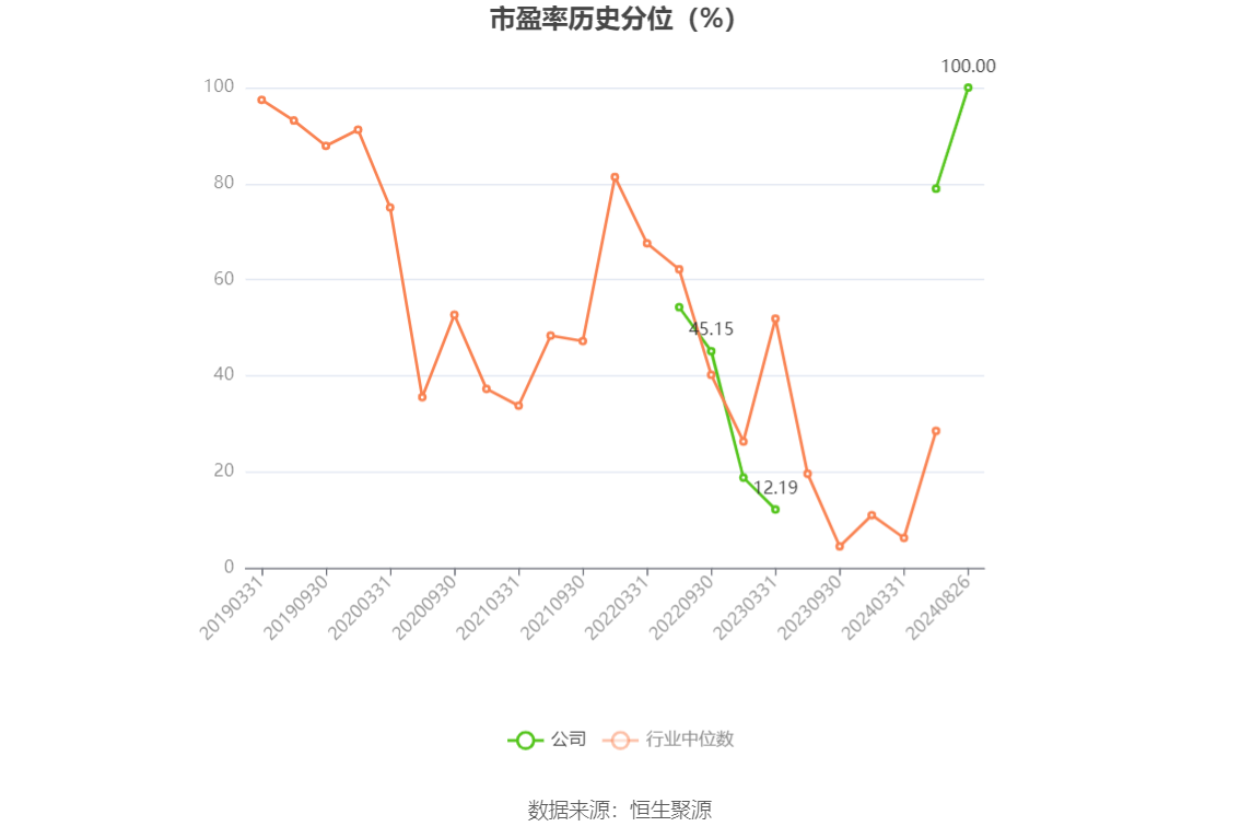 市盈率为负时,不显示当期分位数,会导致折线图中断。