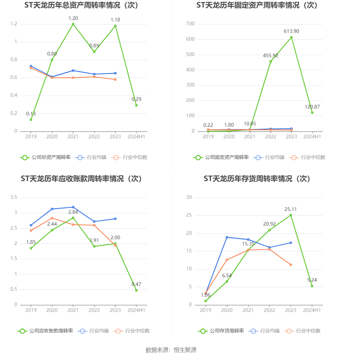以8月26日收盘价计算,ST天龙目前市盈率(TTM)约为346.46倍,市净率(LF)约为42.14倍,市销率(TTM)约为2.94倍。