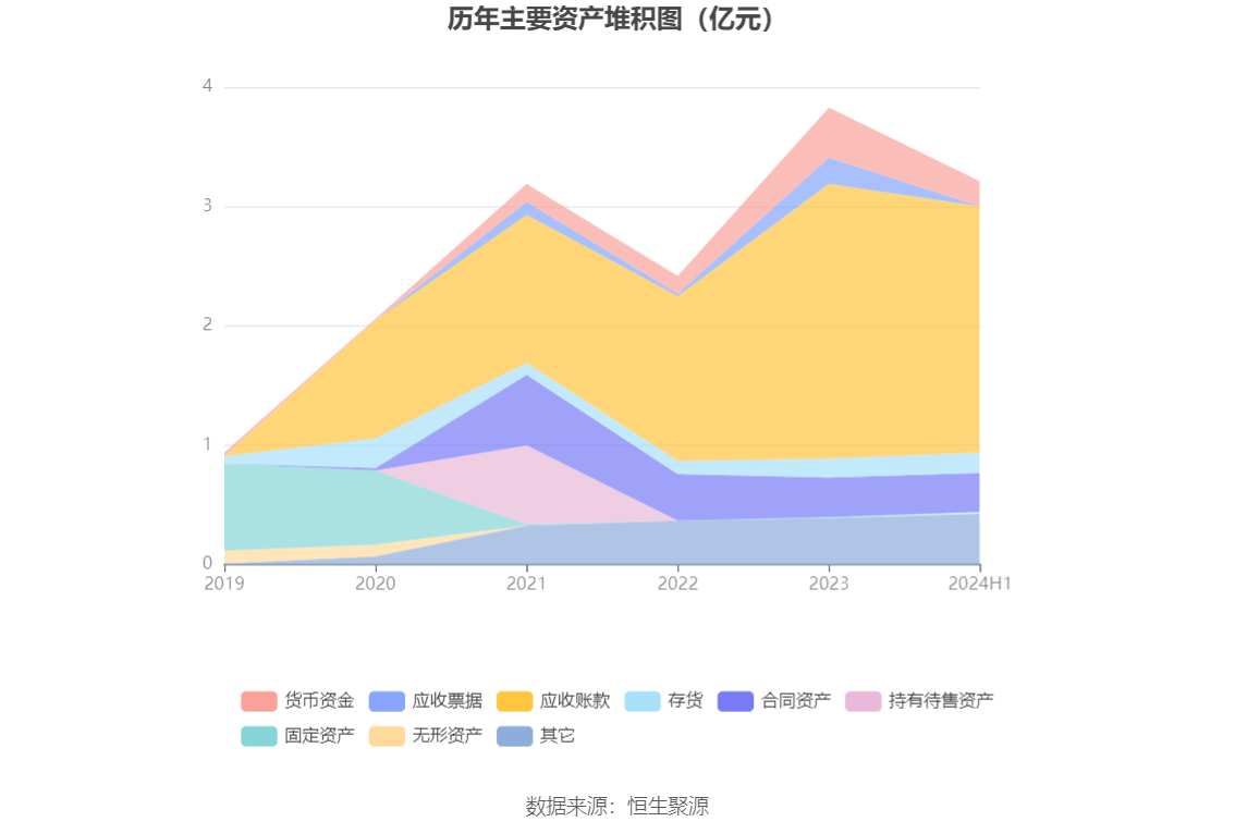 资产重大变化方面,截至2024年上半年末,公司货币资金较上年末减少48.82%,占公司总资产比重下降4.26个百分点;应收账款较上年末减少10.32%,占公司总资产比重上升4.15个百分点;预付款项较上年末增加120.90%,占公司总资产比重上升2.55个百分点;合同资产较上年末减少1.43%,占公司总资产比重上升1.51个百分点。