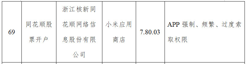 附件6浙江省通信管理局通报存在问题的应用软件名单中,有3款同花顺旗下软件登榜。