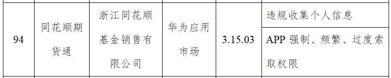 由浙江同花顺基金销售有限公司开发的同花顺期货通(版本号:3.15.03),应用来源为华为应用市场,所涉问题为违规收集个人信息;APP强制、频繁、过度索取权限。