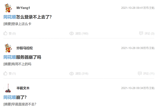 网友崩溃的背后也体现了同花顺庞大的客户群体。