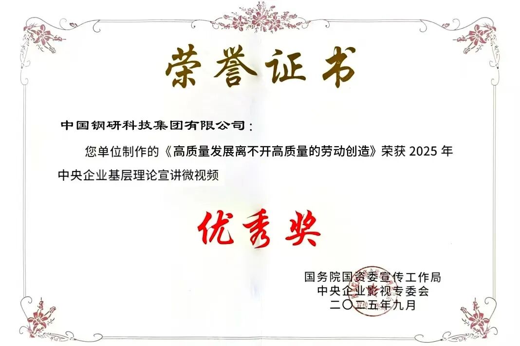 9月19日,国务院国资委在京举行第六届中央企业社会主义核心价值观主题微电影(微视频)展映发布仪式。钢研高纳选送的《高质量发展离不开高质量的劳动创造》荣获2025年中央企业基层理论宣讲微视频优秀奖。
