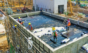 工人在进行防水施工。