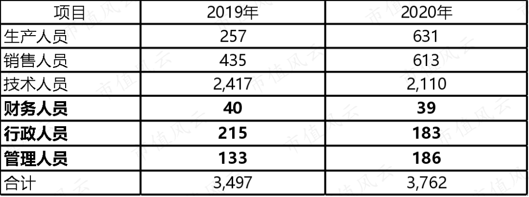 2020年较2019年,财务人员减少了1人,行政和管理人员合计增加21人,人数上涨,计入管理费用的职工薪酬总数却大幅降低,风云君推测可能是因为疫情,公司调整了薪资结构,削减了部分行政管理人员的福利待遇。