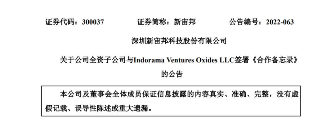 近日,新宙邦全资子公司美国新宙邦与 IVOX 签订了《合作备忘录》,拟共同出资在美国设立生产碳酸酯溶剂以及拟生产锂离子电池电解液的合资公司。