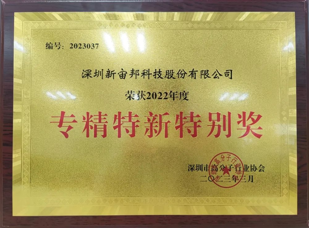 会上同期举行2022年度表彰仪式,表彰一批为行业及协会做出贡献的先进集体和个人。经深圳市高分子行业协会评选,新宙邦在表彰中荣获“行业专精特新特别奖”。
