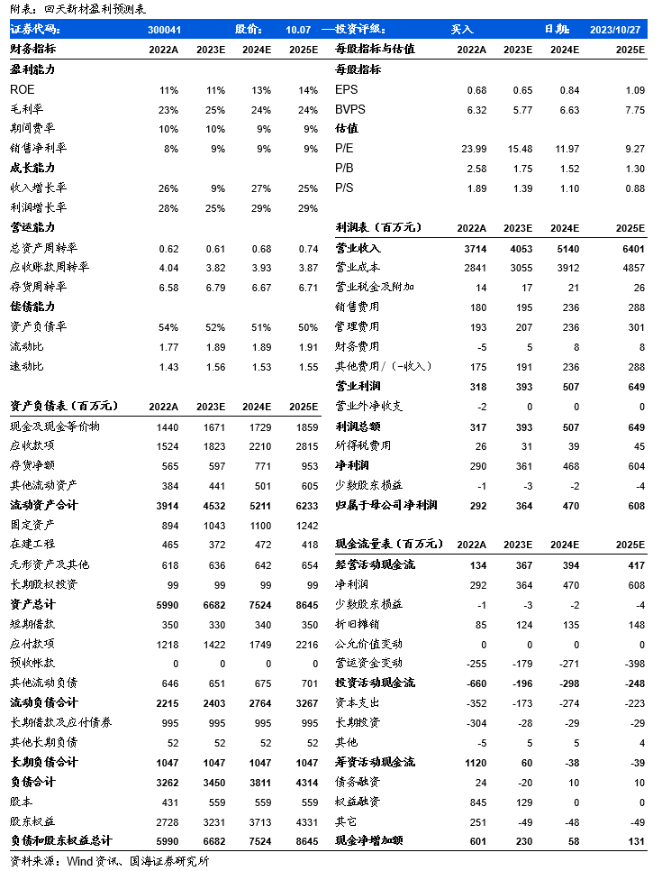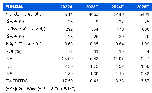 基于公司前三季度表现,我们调整了公司盈利预期,预计公司2023-2025年归母净利分别3.64、4.70、6.08亿元,对应的PE分别为15、12和9倍,维持公司“买入”评级。