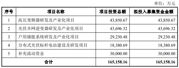 合康新能(300048.SZ)2月28日披露的2026年度向特定对象发行A股股票预案显示,公司本次向特定对象发行股票拟募集资金总额(含发行费用)不超过165,158.16万元,扣除发行费用后的募集资金净额拟全部投入以下项目:高压变频器研发及产业化项目、光伏并网逆变器研发及产业化项目、户用储能系统研发及产业化项目、分布式光伏标杆电站建设及研发项目和补充流动资金。