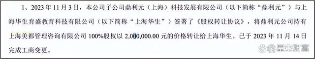 同年,世纪鼎利以3.6亿元(溢价3.33亿元)收购上海美都,布局国际学历教育业务。然而,历史再次上演,2018-2020年将,上海美都业绩完全未达承诺。2023年,公司已200万对价,将其对上海美都得全部股权转让。