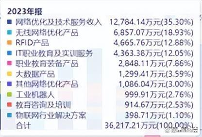 其中,通信服务主要包括两方面,一个是卖产品,一个是卖服务。所谓卖产品,主要是向国内电信运营商销售用于无线网络优化测试的主要仪表工具;所谓卖服务,就是向运营商提供网络优化技术服务。而职业教育,则是与高校合作,提供职业教育运营服务。