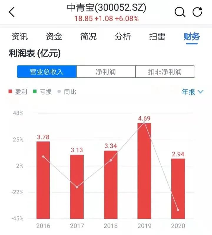 腾讯自选股数据:中青宝近五年营收净利润明细