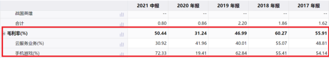 手机游戏营收虽近年出现负增长,但其毛利率总体高于云服务业务。2020年上半年,中青宝,云服务业务毛利率为50.92%,手机游戏业务为72.33%,公司整体毛利率为50.44%。