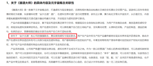 在首次的关注函回复中,中青宝称《酿酒大师》以百年传承的慎初烧坊为背景,玩家模拟经营“金沙古酒”酒厂,在虚拟世界对酒厂进行经营管理,依托云计算,算力和社交等元宇宙技术,从价值交互,内容承载和数据网络传输及沉浸式展示融合构建元宇宙,开启现实与虚拟的梦幻联动。