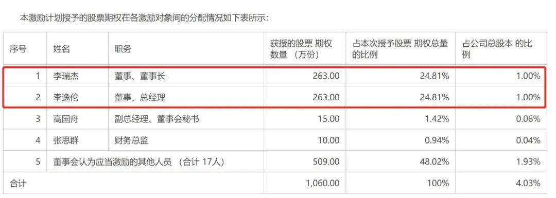 备受关注的是,本激励计划拟向实际控制人、董事长李瑞杰先生以及公司董事、总经理李逸伦先生分别授予263万份股票期权,李瑞杰先生与李逸伦先生系父子关系,二人合计授予526万份股票期权。