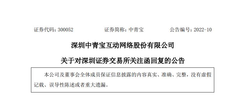 此公告发出后不久,证监会向中青宝下发了关注函,要求说明保尔利德元宇宙数字平台的经营情况,以及与元宇宙业务的关联性等。