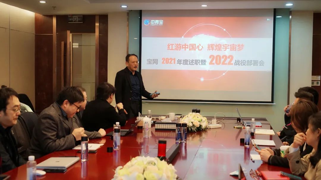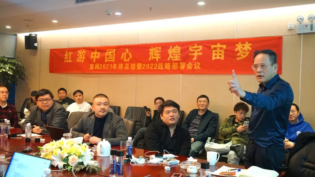 2022年1月18-19日,红游中国心,辉煌宇宙梦——中青宝网2021年终总结暨2022战略部署会议于总部会议室成功举办,中青宝董事长李瑞杰、总经理李逸伦、中青宝高级副总裁、宝腾互联总经理张超、副总裁董炽珍、副总经理张继文、副总经理、董事会秘书高国舟、助理总裁陈鹏、财务总监张思群、中青宝及旗下子公司管理人员一同参加此次会议。