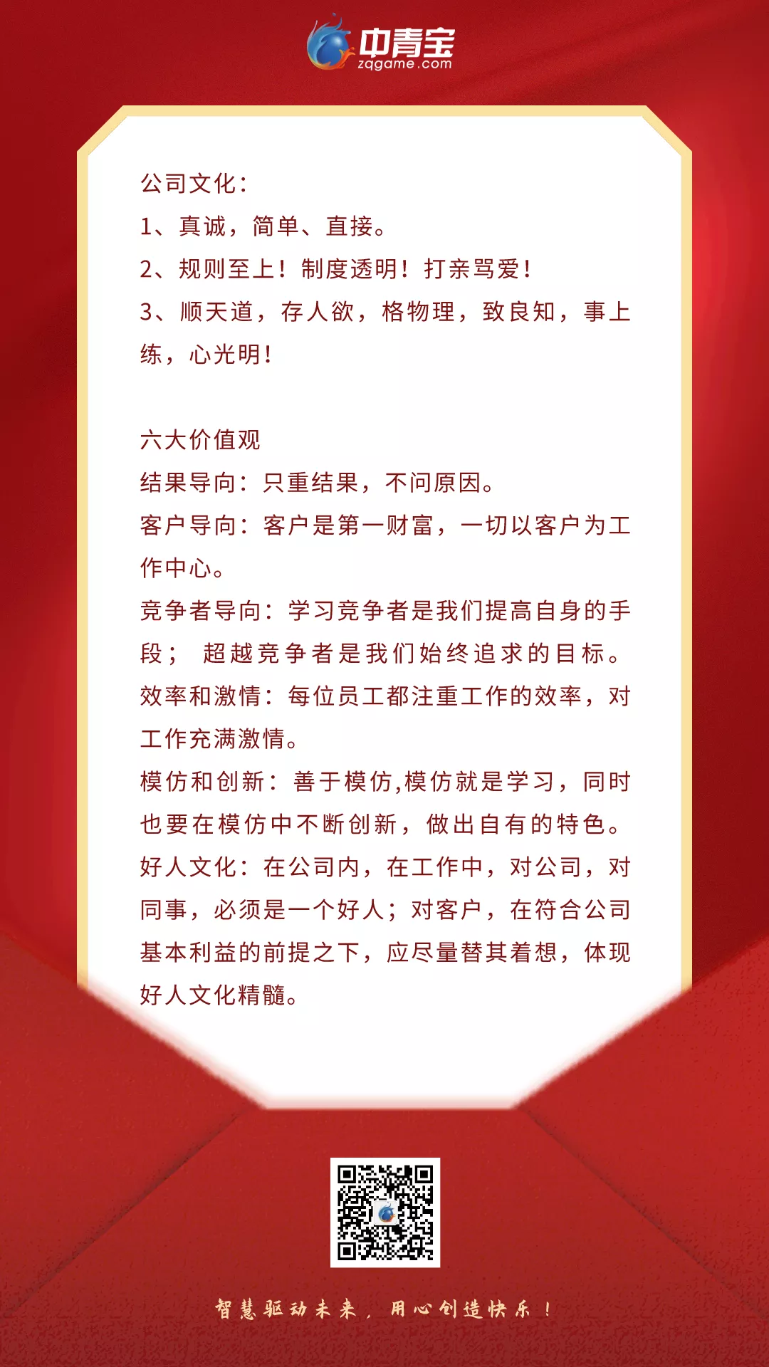 以核心价值观促进,企业文化引领,提升企业文化软实力。在会上,董事长李瑞杰重申了中青宝“结果导向、客户导向、竞争者导向、速度和激情、模仿和创新、好人文化”的核心价值观,进一步解读了中青宝三条重要文化:一是真诚、简单、直接,不拍马屁、不玩城府、不玩欺骗!不玩权谋!不玩公司政治,轻松相处愉快工作!长长久久!二是规则至上、公开透明、打亲骂爱!三是顺天道,存人欲,格物理,致良知,事上练,心光明!以文化赋能,强化内部核心力量,以铁军文化打造纪律严明铁血军团,培养一批勇于担当、敢于亮剑的班长连长,提高团队的战斗能力和项目效率,增强公司内部成员文化认同感及使命感。