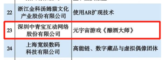 此次的入榜也从多方面说明行业对于中青宝在该领域布局方面的认可,也凸显了《慎初烧坊-酿酒大师》在新商业领域创新探索所带来的的行业价值。以技术+文化结合,打造更多优势应用场景,促进行业新业态形成,在引领行业发展上,中青宝将继续结合自身优势技术,夯实前沿技术底座,深化“数字+”模式应用,不断创新发展。趋势前行,赛道超车,完善全真拟真互动模式,深入构建全新虚拟数字世界,以创新发展能力,打造高质量数字产业,赋能实体经济发展。