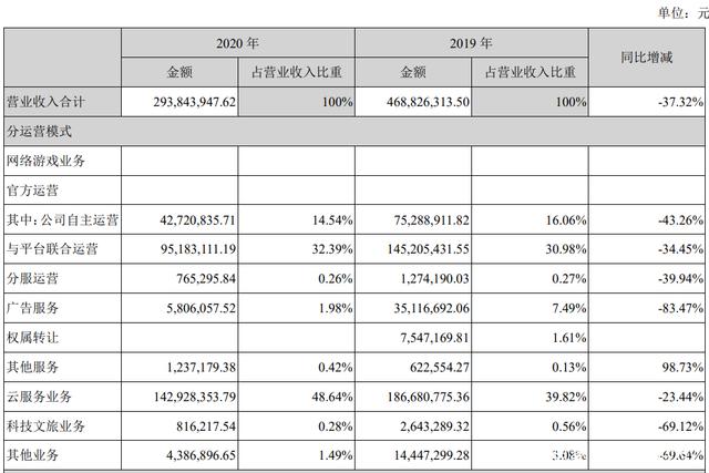 根据公司2020年度年报来看,公司近3亿的收入中,游戏运营和云服务业务差不多各占半壁江山,相较2019年还有大幅度下滑。
