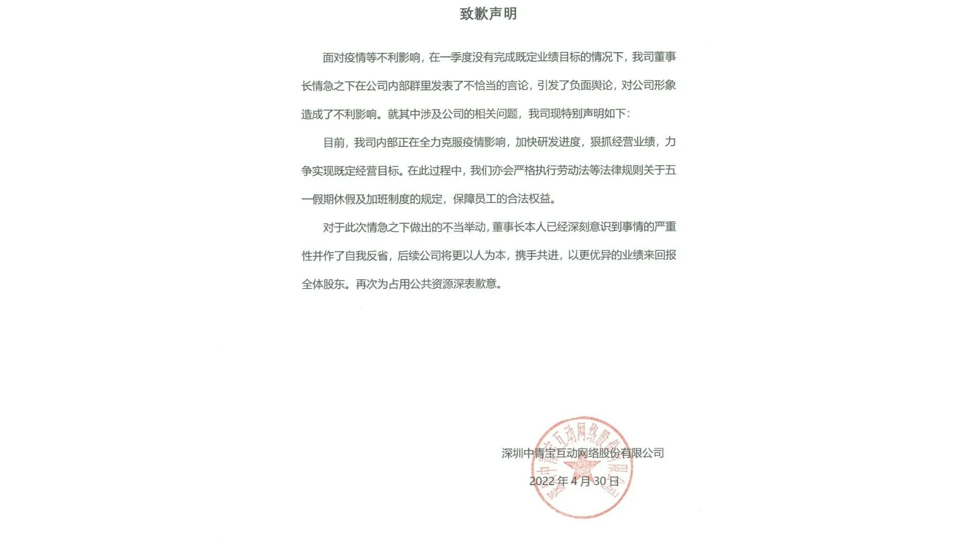 这个“五一”假期,去年的元宇宙牛股中青宝再次登上热搜。只不过,公司这次上热搜并非因为股价,而是因为董事长李瑞杰的不恰当言论。