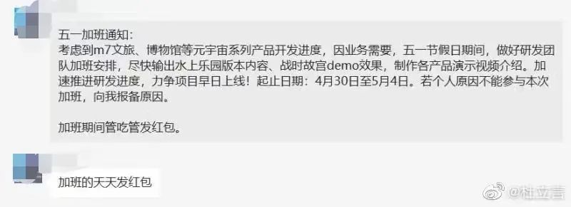 不过这一次的出圈方式有些不同。五一期间,中青宝董事长李瑞杰强制要求大家“五一”假期加班,并表示“五一全部加班且没有加班费,不服的,马上炒掉。”。事件引起网络关注,一度登上微博热搜。