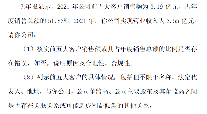 2021年年报显示,公司前五大客户销售额为3.19亿元,占年度销售总额的51.83%,由此计算公司2021年全年销售总额约为6.15亿,远超公司年报中的营业收入3.55亿元。深交所要求中青宝核实前五大客户销售额或其占年度销售总额的比例是否存在错误,如否,说明原因及合理性、合规性。