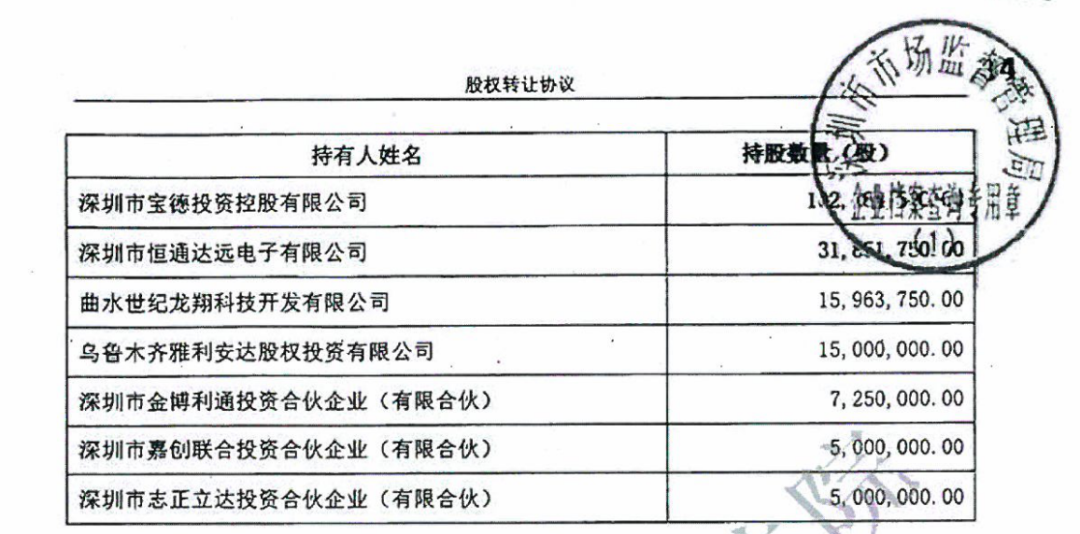 到了2019年8月2日,李伟波又瞒着其他股东与与深圳市恒通达远电子有限公司(以下简称为“恒通达远”)签订了股份转让协议,将绿恒科技持有的3.25%宝德科技集团股份有限公司(以下简称为“宝德科技”)的股权转让给恒通达远,交易作价1973.44万元,宝德科技也是一家宝德系公司。