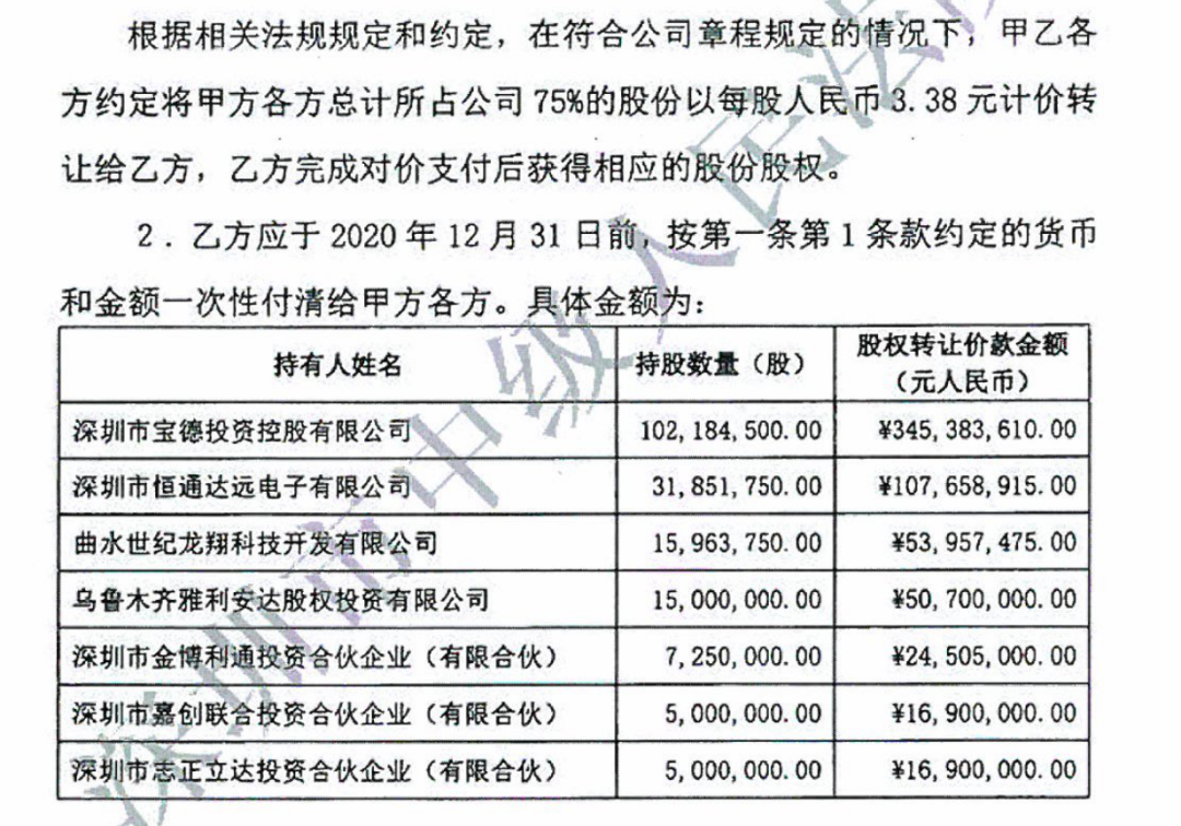 图源:《关于宝德科技集团股份有限公司的股份转让协议》,爆料人提供