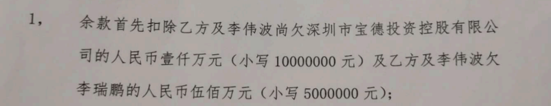 另外,李伟波欠宝德投资的1000万元将从绿恒科技与恒通达远交易的3181.18万元中抵扣。值得一提的是,彼时李伟波还向一位李瑞鹏的自然人借了500万元,但这笔借款没有以绿恒科技的名义担保,却也在《补充协议一》中进行了抵扣,据悉,该自然人为李瑞杰的亲戚。
