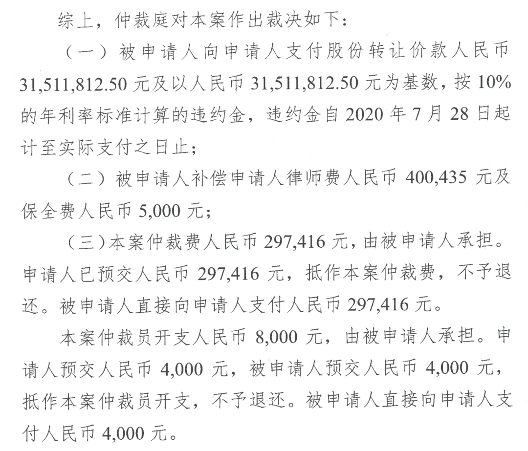 图源:《深圳国际仲裁院裁决书》,爆料人提供