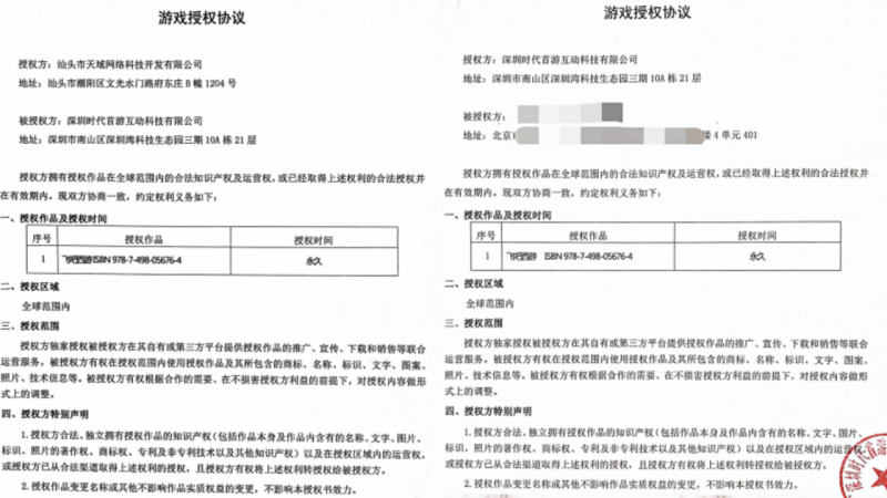 按照张青的描述,彼时,为了稳妥起见,其要求与中青宝签约,后者在这次游戏版号的交易中属于中介方。为了规避风险,当时双方签署的是一份移动游戏授权协议。