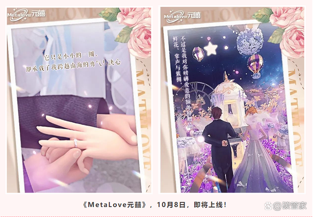 据官方介绍,《MetaLove元囍》作为国内首个以婚礼题材为主构想的虚实融合类型产品,汇集了游戏开发、数字孪生、图像引擎等多种高新技术优势,采用半写实画风的美术风格,对线下实体酒店、线下婚宴实景与线上产品进行全方位的1:1高度还原,将在空间场景、图像呈现等多角度复刻婚礼现场。