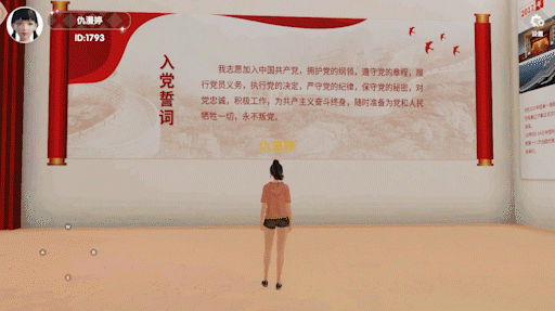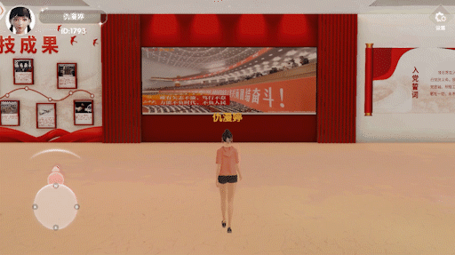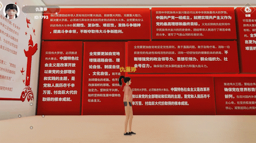 目前,数字化虚拟党建已完成基础DEMO搭建,以党的二十大为主题虚拟展厅,宣传室基础功能已构建完成,且用户可建立专属虚拟形象进入展厅,自定义个人五官、妆容、发型等,获得沉浸式观展体验。