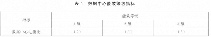 数据中心电能比的最大允许值为能效3级,即PUE≤1.50。