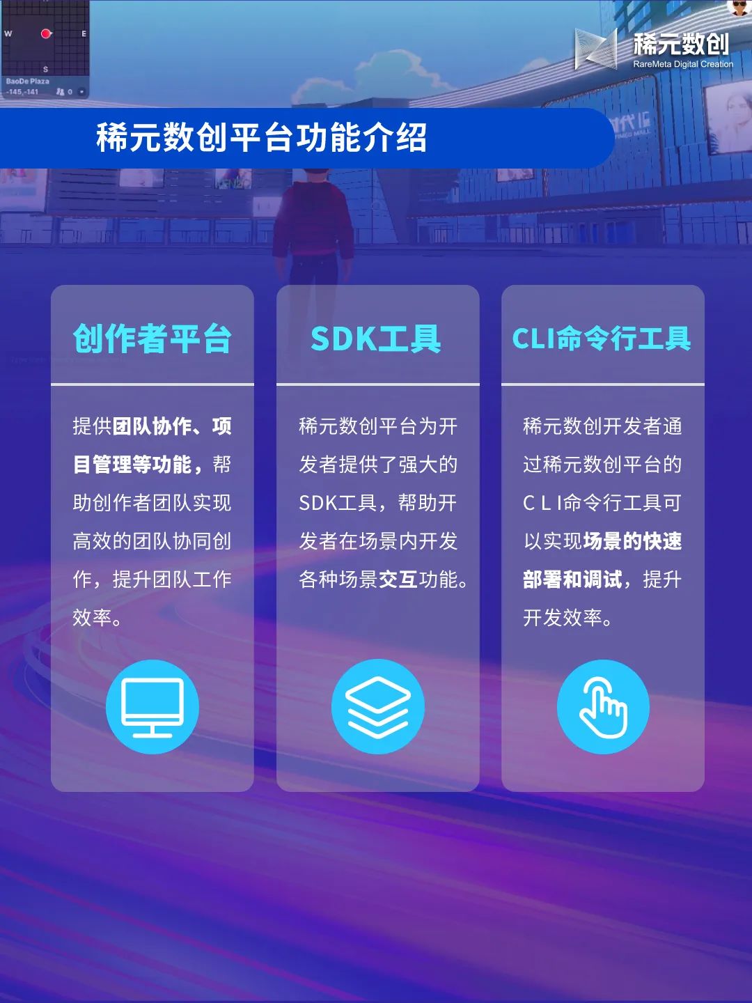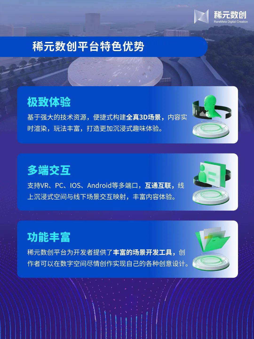 虚实共生,智领未来。中青宝旗下全资子公司利得链推出数字空间创作平台《稀元数创》,低成本、低门槛、跨终端,打破专业界限壁垒,帮助创作者最大限度实现创作自由,搭建专属数字虚拟空间。