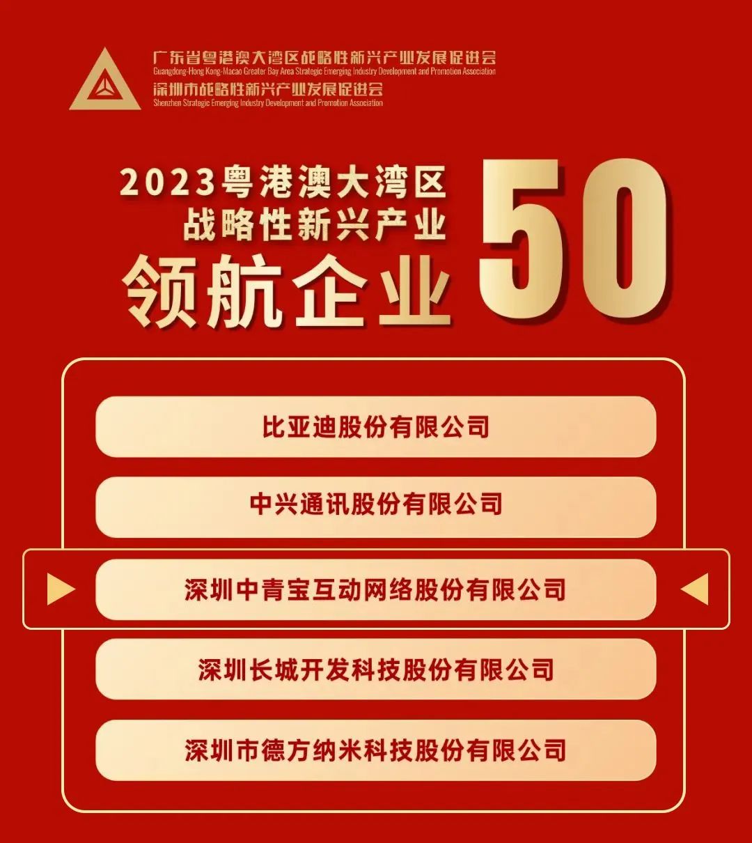 深圳中青宝互动网络股份有限公司成功入选,荣获“2023年粤港澳大湾区战略性新兴产业领航企业”称号。