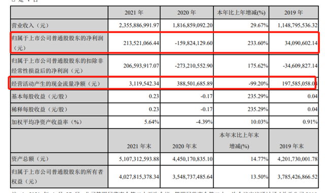 4月15日,鼎龙股份发布2021年年报,公司实现营业收入23.56亿元,同比增长29.67%;归属于上市公司股东的净利润为2.14亿元,去年同期亏损1.60亿元,实现扭亏为盈。