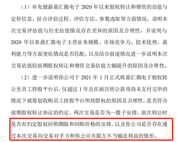 关注函提到,两次交易是否为一揽子安排,前次转让是否有约定股权回购期限和回购价格的安排,以及公司是否存在通过交易向交易对手和公司关联方当输送利益的情形。