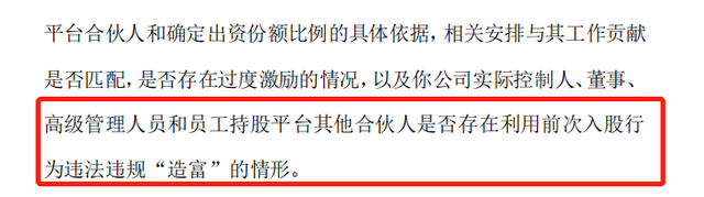深交所要求公司进一步说明相关员工成为员工持股平台合伙人和确定出资份额比例的具体依据,相关安排与其工作贡献是否匹配,是否存在过度激励的情况,以及公司实际控制人、董事、高级管理人员和员工持股平台其他合伙人是否存在利用前次入股行为违法违规“造富”的情形。