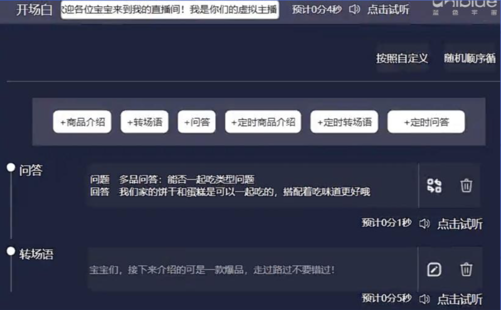 更关键的是,尽管更省时更高效,但是“蓝标智播”的直播质量并不打折扣。“蓝标智播”不仅可以设置开播后的开场词功能,通过专业的欢迎话术,第一时间留住进入直播间的用户;在直播的过程中,商家还可通过智能串词、智能热场及智能@观众表达欢迎感谢等功能,持续与观众进行紧密的互动,甚至还能做到提醒用户点赞、关注,让直播间气氛持续高涨,实现互动不冷场,让虚拟主播形象更加饱满亲切的同时,也进一步拉近与观众之间的距离,促成消费及留存。