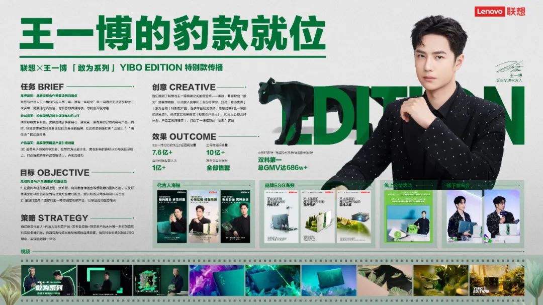 因此,双方以“黑豹”为切入点,通过明星代言人+限量特别款定制产品+星光夜发布会直播+视觉系产品大片等传播手段,传递联想敢为的品牌态度,凸显科技创新实力与企业社会责任,并以爆品帮助品牌生意增长,打造了一场精彩的“豹款”营销。