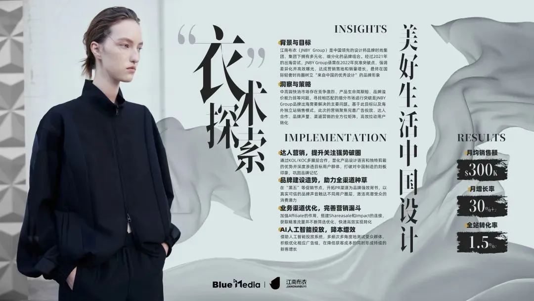 在中高端快时尚消费市场,消费者的主要诉求点在于个性的体现与审美的共鸣。JNBY经过2021年的出海尝试后,亟需在2022年找准突破点,强调差异化并高效曝光,达成营销落地和销量增长。在“Made in China”横扫全球的大环境下,我们借助江南布衣把“Design in China”的优秀设计师品牌深深地种草在海外消费者心中,打消国外消费者对中国品牌“廉价无聊”的刻板印象,让更多优秀的国货品牌被世界看到。