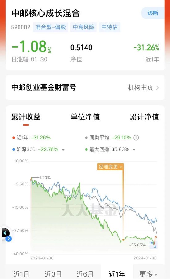 红星资本局注意到,截至2023年6月底,前述三只被点名的基金并非蓝色光标的股东。其中被两次点名的中邮核心成长,业绩确实并不理想。这也使得张媛说道:“我买的中邮核心成长,成长了十几年了,但凡我看一眼的时候,就都没给我机会赎回。”