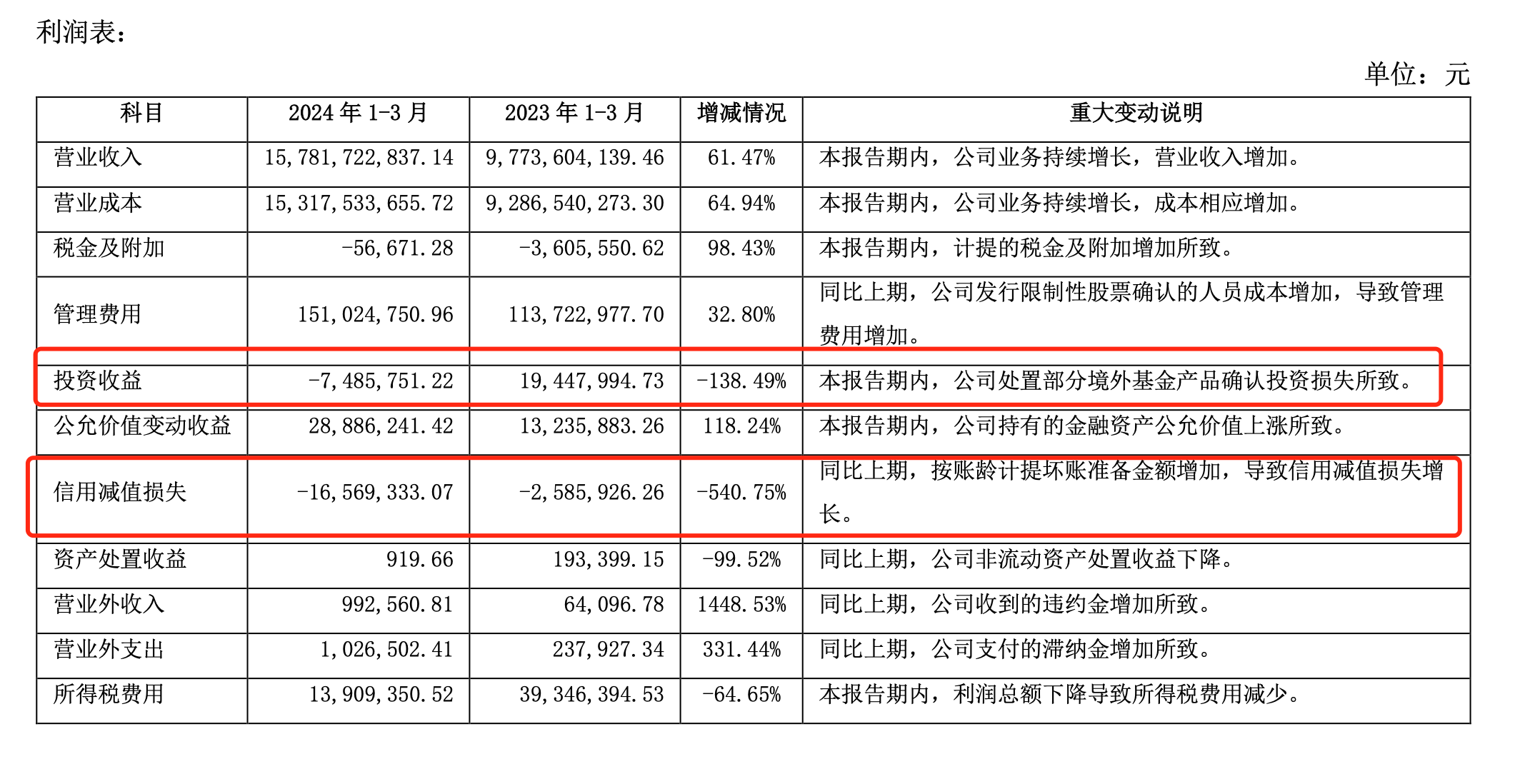 对于蓝色光标一季度增收不增利的情况,财报并未直接指出原因,不过梳理一季报发现,或由于一季度投资收益转亏以及信用减值损失增长等原因。