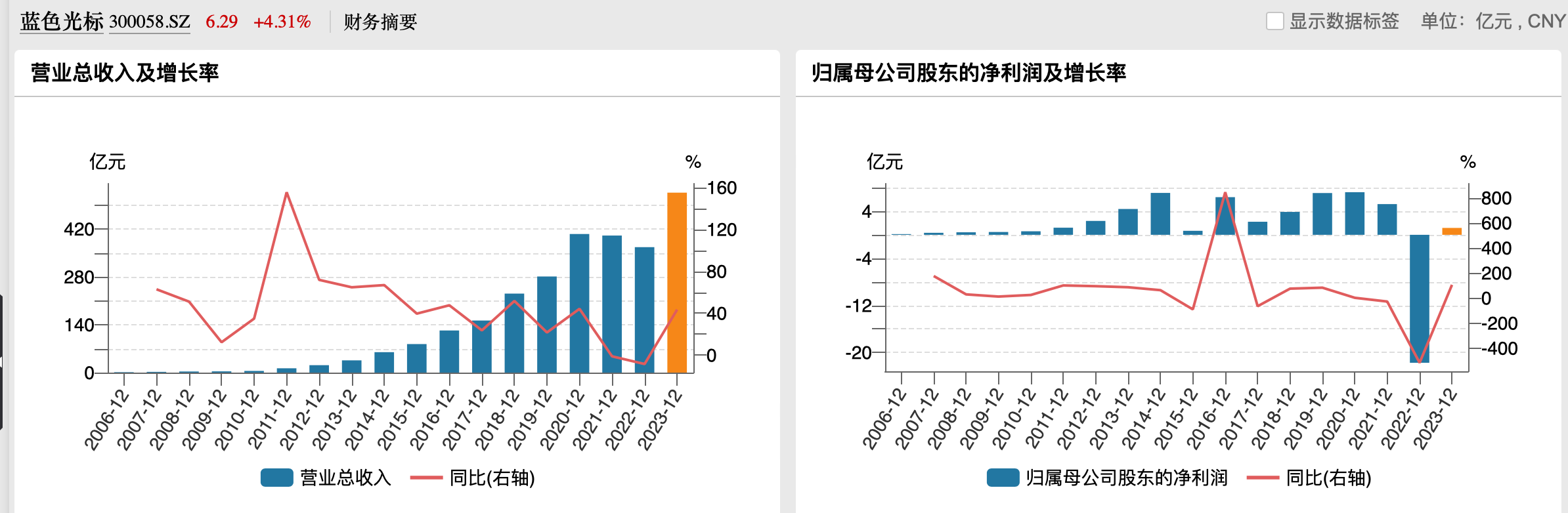 据wind数据显示,蓝色光标去年及今年一季度的营收均创历史同期新高,但净利润仍处于历史低位。