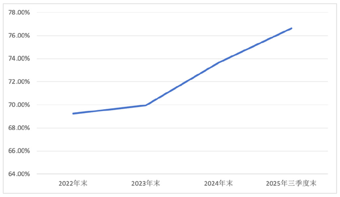 2022年末—2024年末,东方财富负债与资产的比例分别为69.24%、69.96%、73.65%。