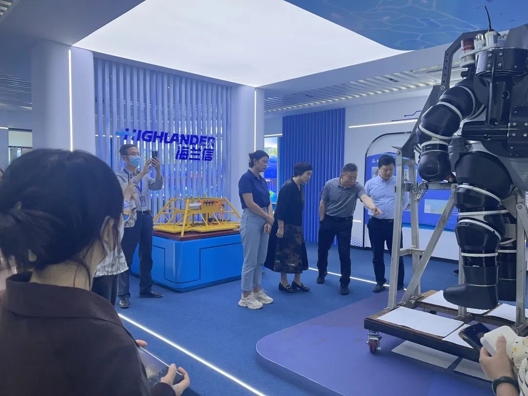 海兰信集团副总裁徐坦接待到访的协会会员,详细介绍了海兰信自创业以来的发展历程与科研成果,邀请协会成员参观海兰信自主研发的各项海洋科技产品,包括海底数据中心(UDC)、载人常压潜水系统(ADS)、系列雷达监测系统等。