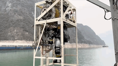 测试中,ADS成功下潜至库区底部,下潜深度达176米。搭载在中继器内的ADS也成功下潜至江底。此外,还进行了两套潜水系统协同下潜的演练。